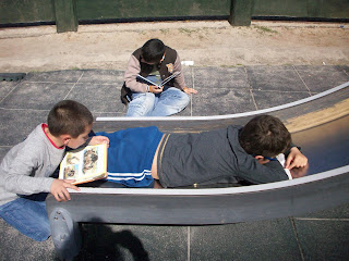 Paragem de 5 minutos a ler que marcou o início e o final da Semana da Leitura nesta escola (2ª feira 9.45h; 6ª feira, 15.15h)