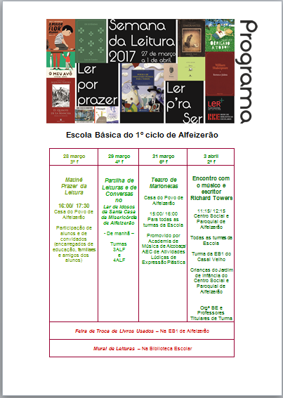 Em dia de feira mensal, teve hoje lugar na vila de Alfeizerão uma feira de troca de livros usados, organizado pela Biblioteca Escolar e pelo projeto Eco-Escolas, com a colaboração das docentes da EB1 da localidade.